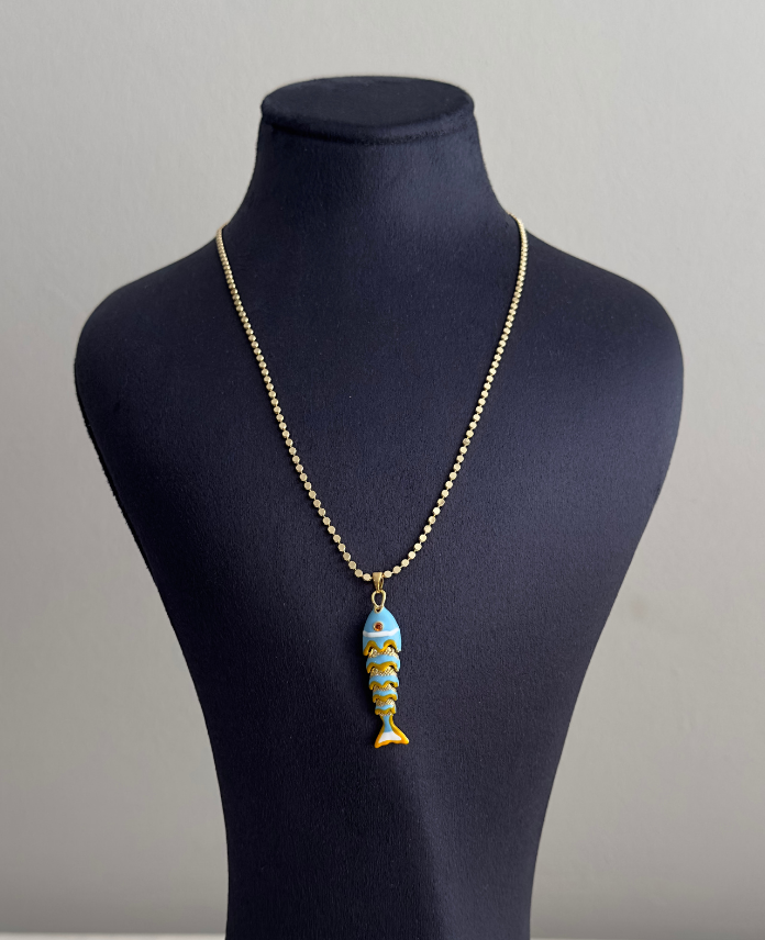 bijuteri vip gold balık mavi 45cm kolye