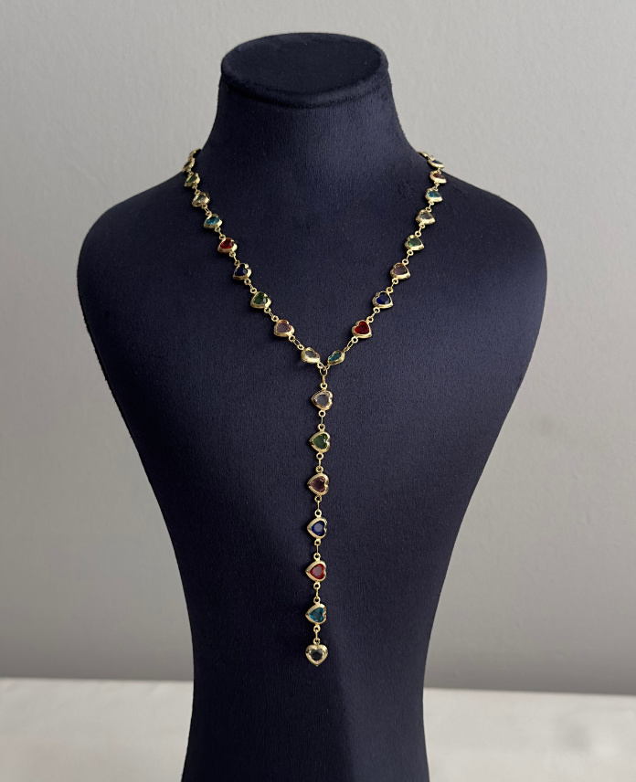 bijuteri vip gold y kalp renkli taşlı kolye