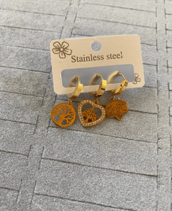 Çelik 3lü Yaşam Ağaçlı Küpe