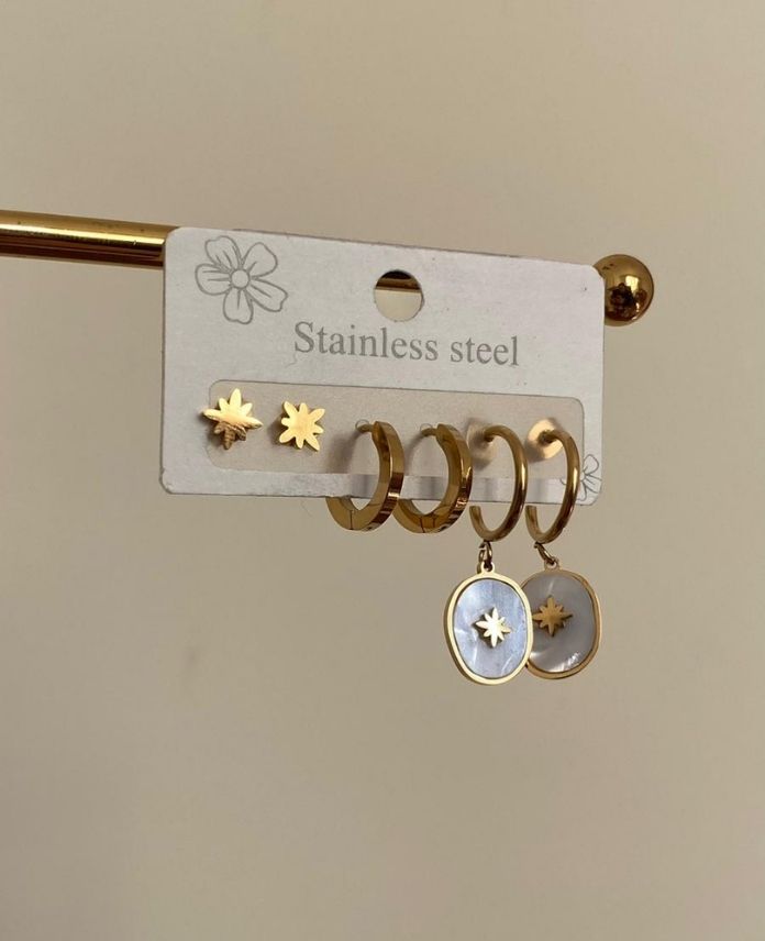 Çelik 6 Lı Elips Desenli Küpe