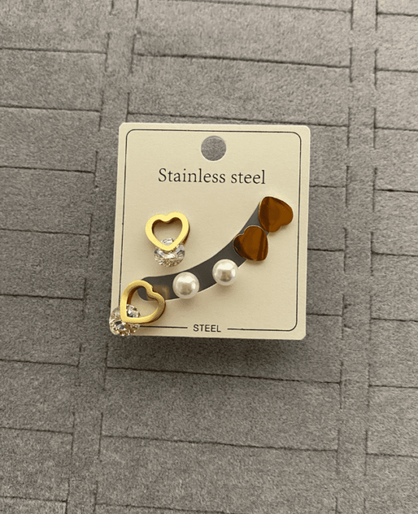 Çelik 6lı Kalp İncili Küpe