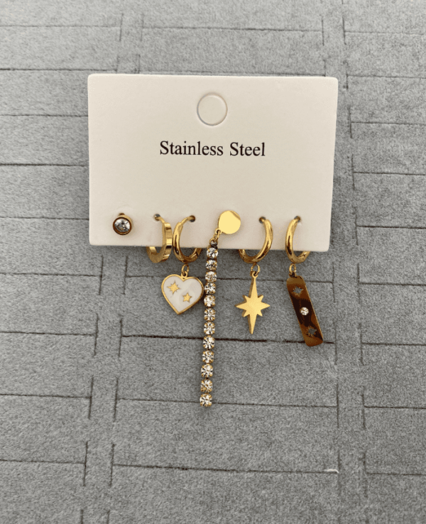 Çelik 6lı Su Yolu Beyaz Kalpli Küpe
