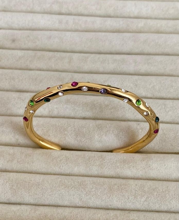 Çelik Açık Dağınık Renkli Taşlı Kelepçe
