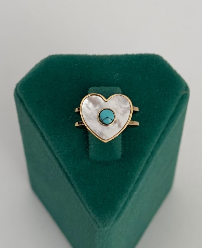 Çelik Ayarlamalı Kalp Sedef Ortası Mavi Doğal Taş Yüzük