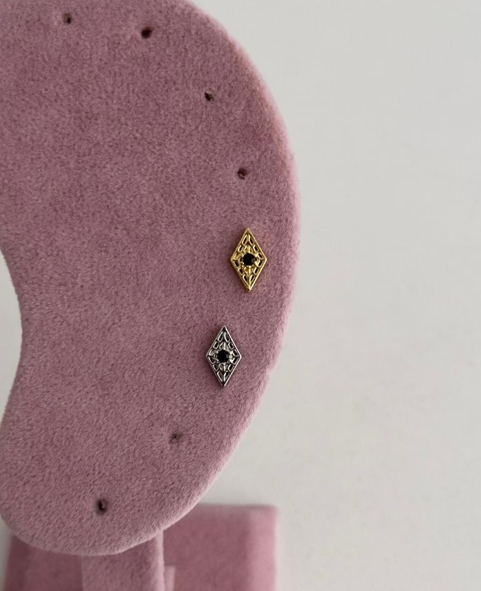 Çelik Baklava Siyah Tragus Piercing (Arkası Düz)