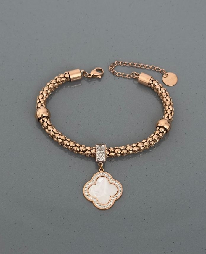 Çelik Boncuklu Yonca Beyaz Bileklik