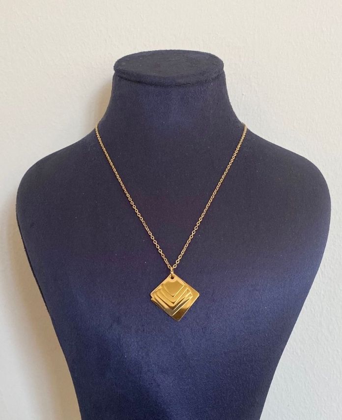 çelik çoklu plaka gold kolye