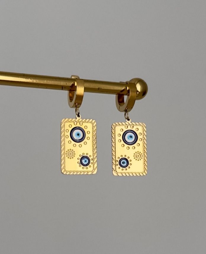 Çelik Dikdörtgen 2 Nazarlı Plaka Küpe