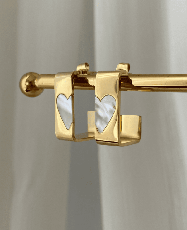 Çelik Dikdörtgen Plaka Sedefli Kalp Küpe