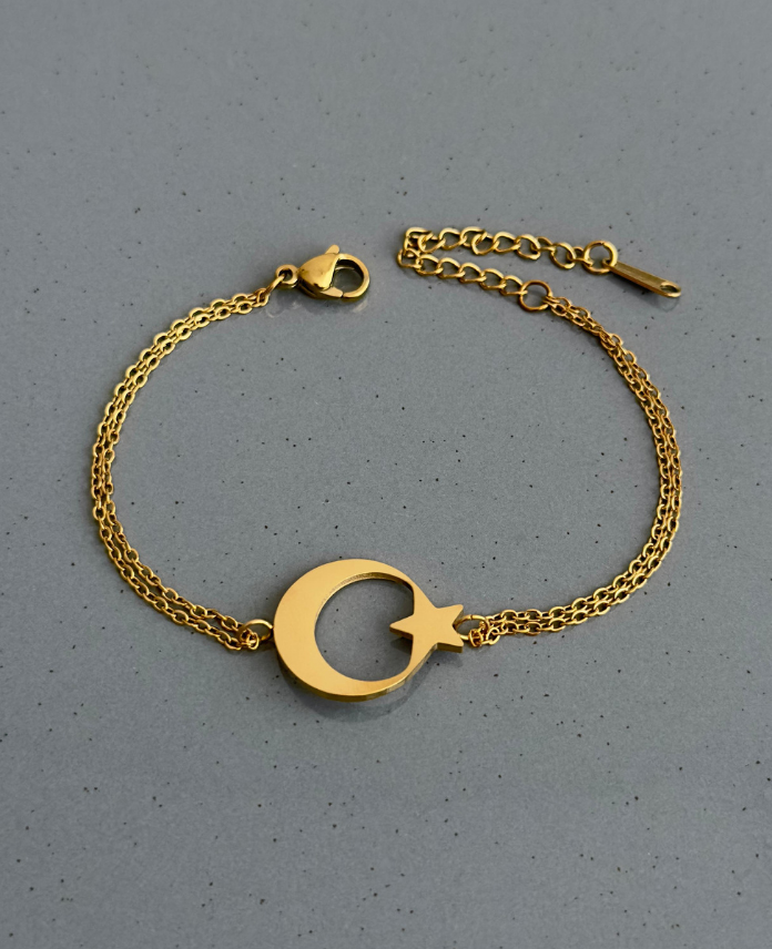 çelik gold ay yıldız bileklik