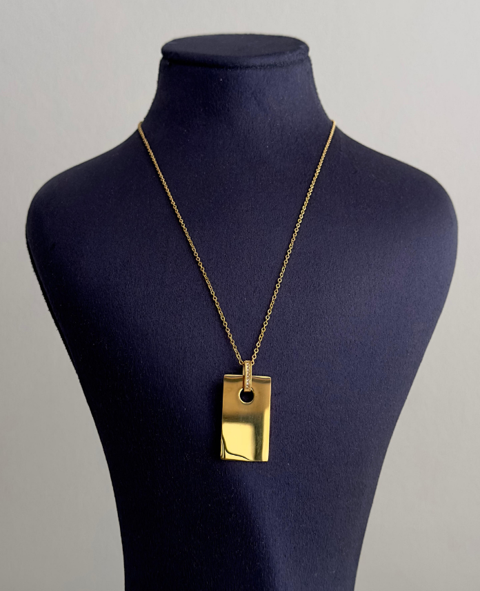 çelik gold dikdörtgen plaka 45cm kolye