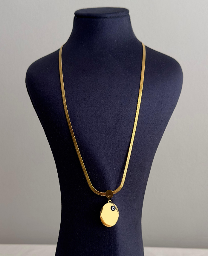 çelik gold italyan elips plaka 60cm kolye