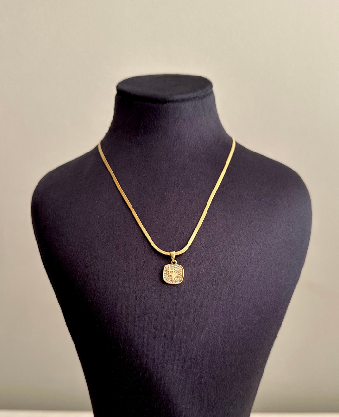 çelik gold kare yıldız taşlı italyan 45cm kolye