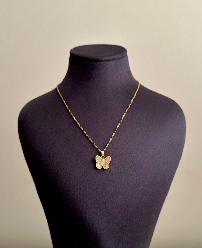 çelik gold küçük kelebek 45cm kolye