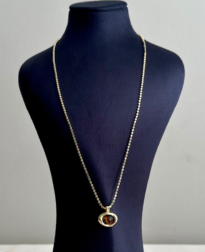 çelik gold nokta zincir elips kahverengi 60cm kolye