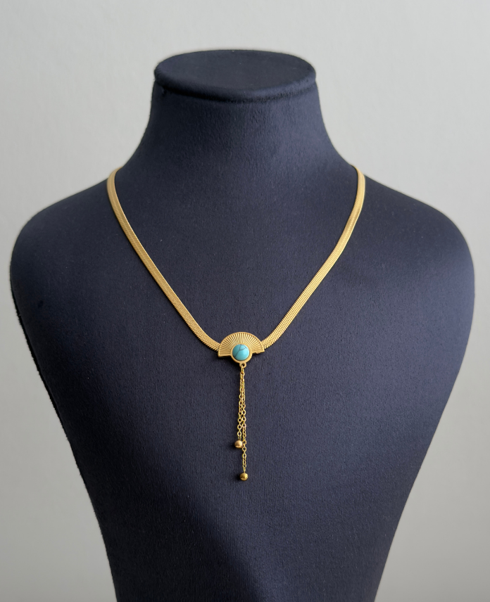 çelik gold yelpaze mavi doğaltaş italyan 45cm kolye