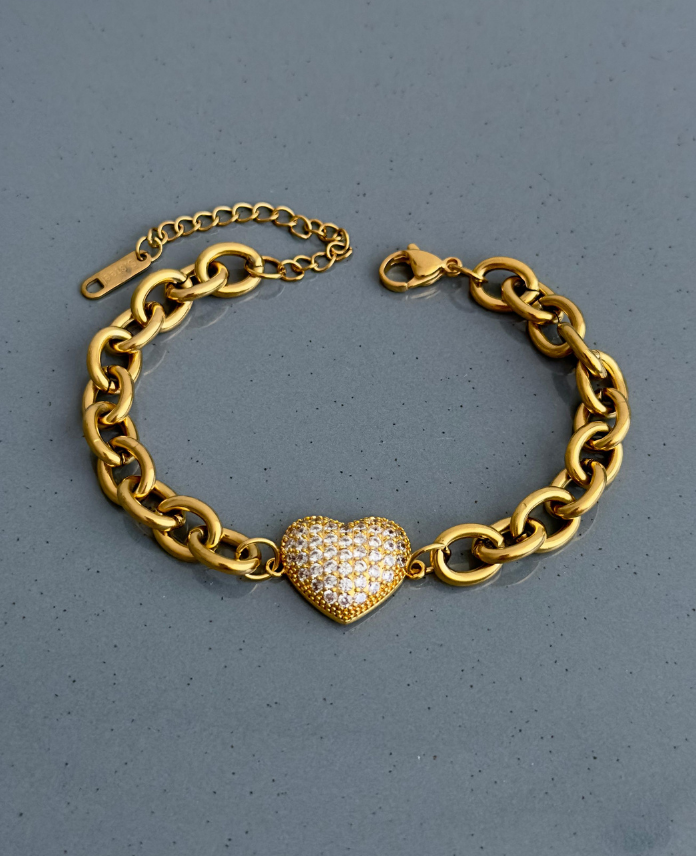 çelik gold zincir ortası kalp taşlı bileklik