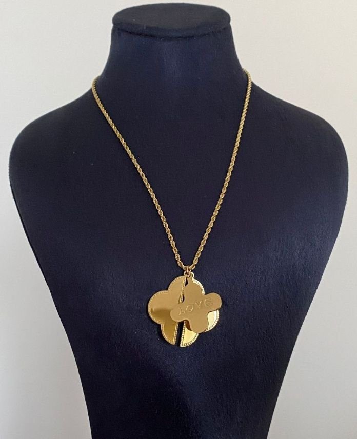Çelik İçi Açılan Yazılı Yonca Plaka Kolye