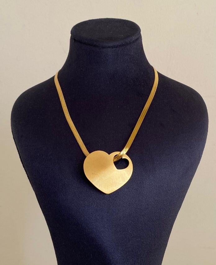Çelik İtalyan Büyük Plaka Kalp Kolye
