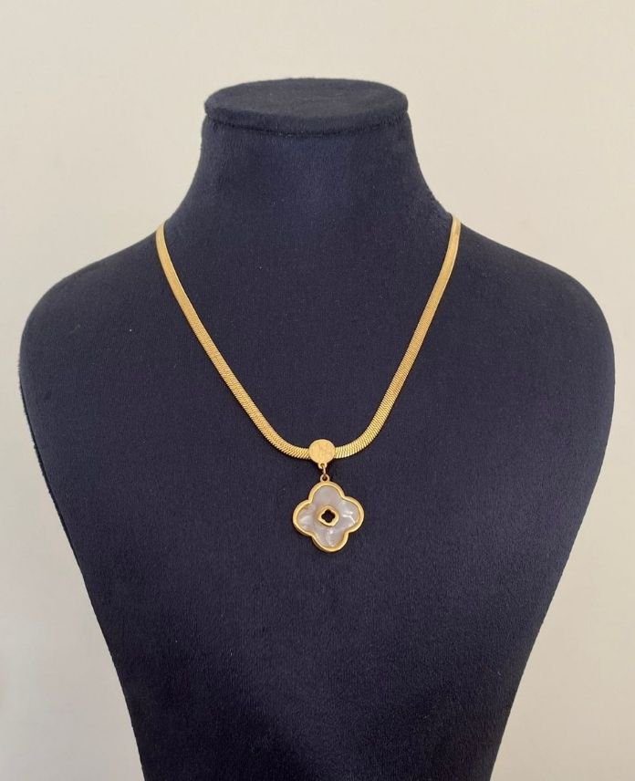 Çelik İtalyan Sedefli Yonca Kolye