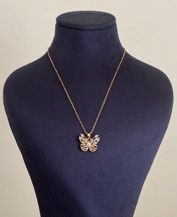 Çelik Kelebek Taşlı Kolye