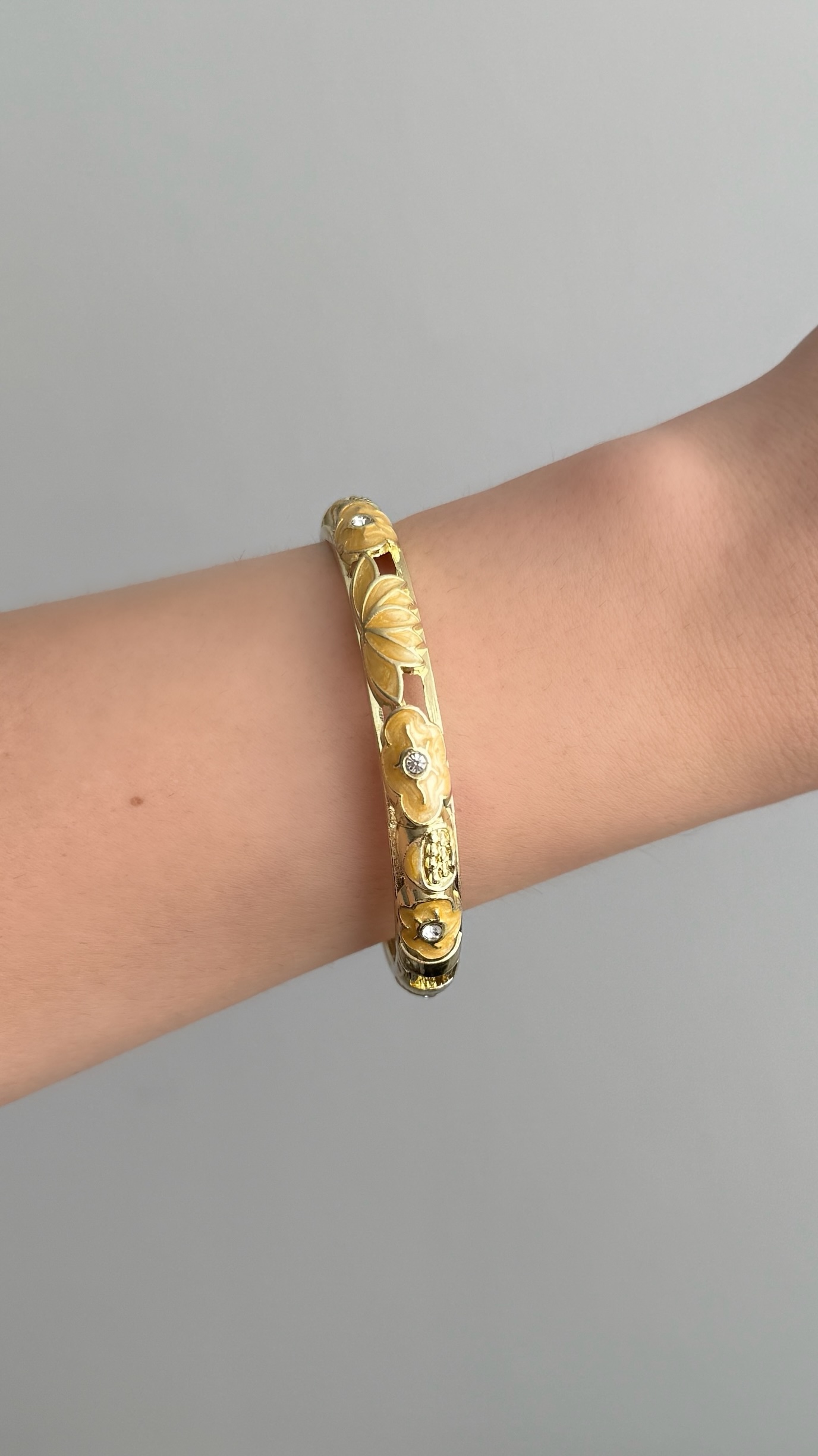 Çelik mineli sarı taşlı çiçek mıknatıs kelepçe