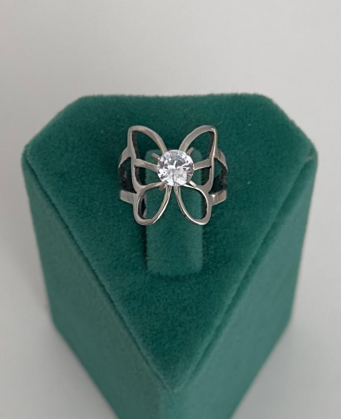 Çelik Numaralı Kelebek Tektaşlı Yüzük