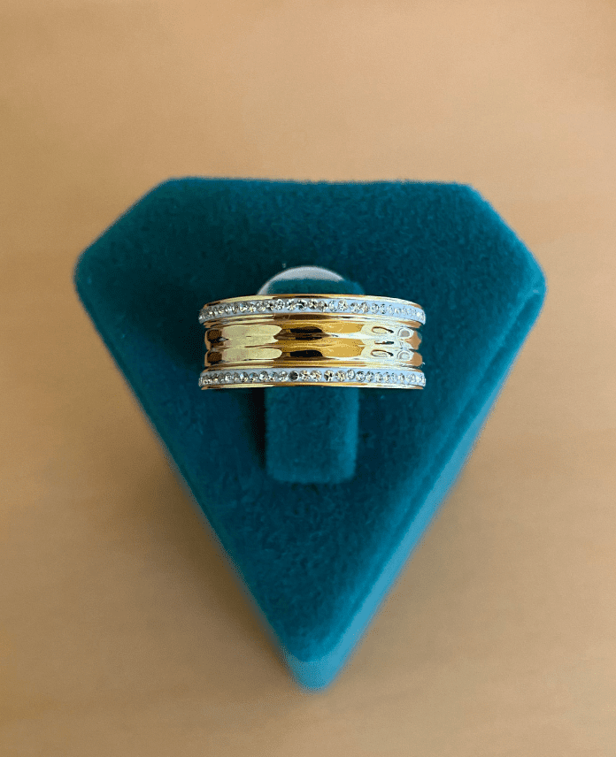 Çelik Numaralı Kenarları Taşlı Alyans Yüzük