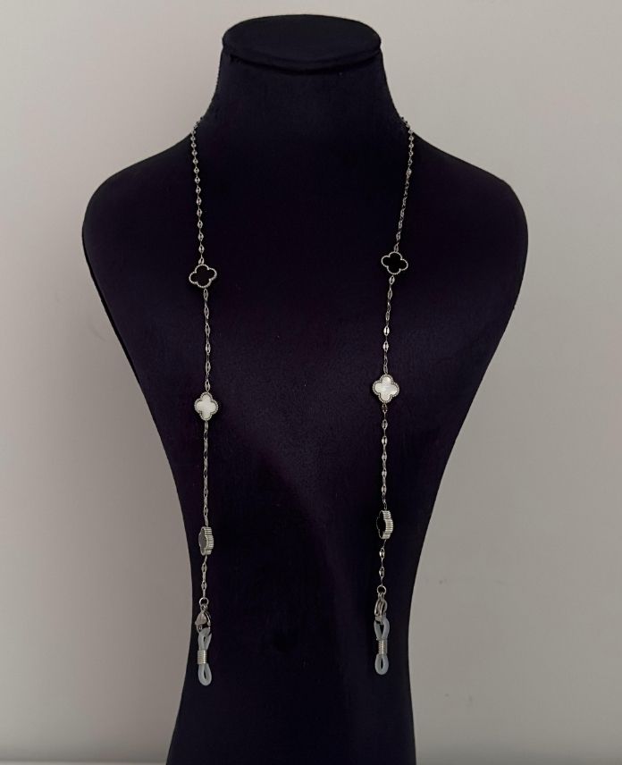 Çelik Parlak Zincir Siyah Beyaz Yonca Gözlük Zinciri