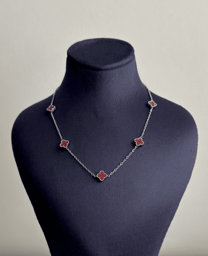 çelik silver beş küçük yonca bordo 45cm kolye