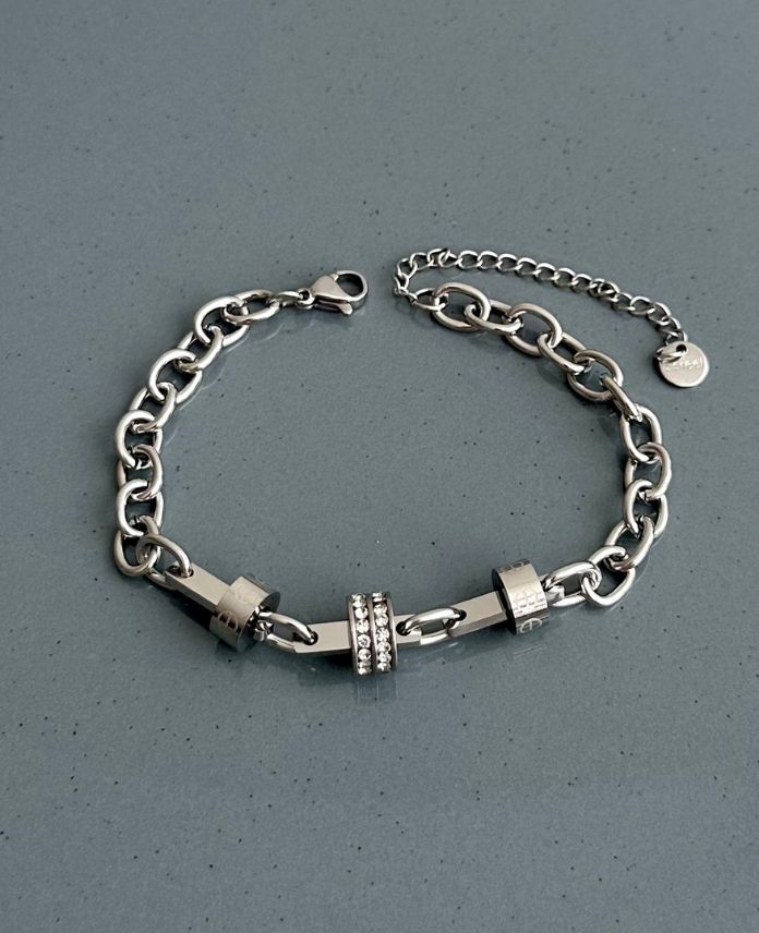 çelik silver ortası taşlı silindir bileklik