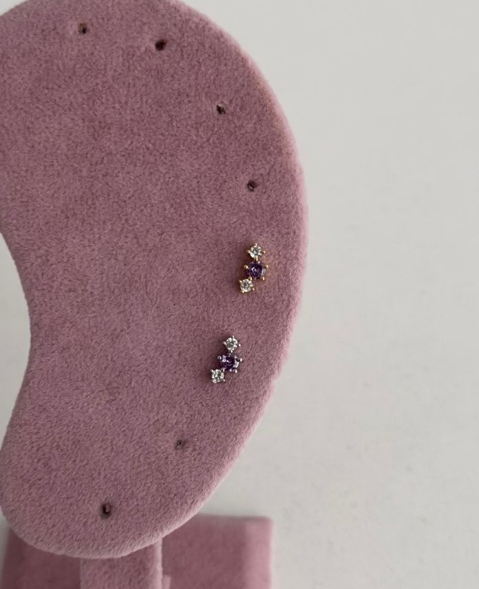 Çelik Üç Top Mor Beyaz Tragus Piercing (Arkası Düz)