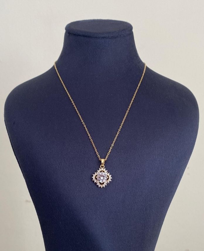 Çelik Yonca Çok Taşlı Kolye