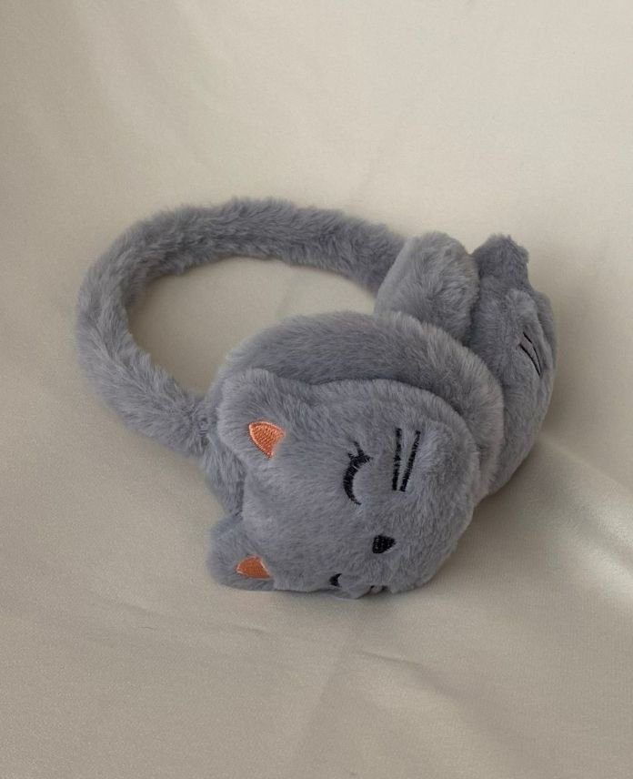 Peluş Kulaklık Kısık Göz Kedi Gri