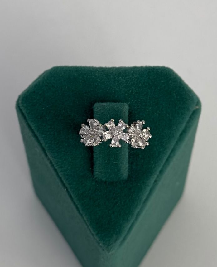 Pirinç 3 Çiçek Taşlı Ayarlanabilir Yüzük