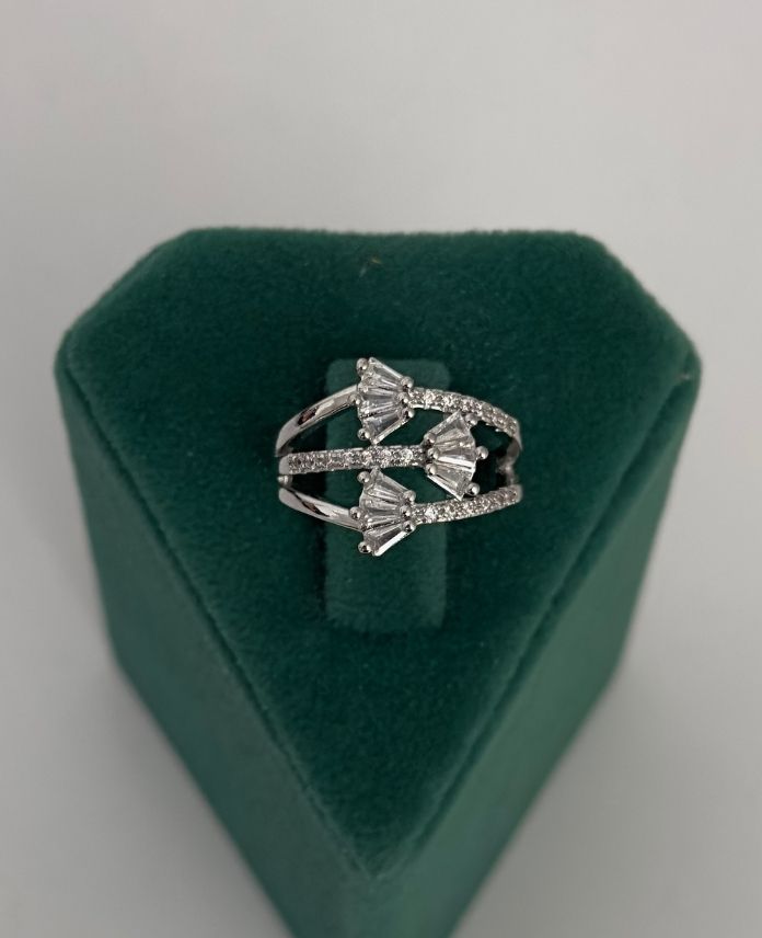 Pirinç 3 Sıra Saçak Taşlı Ayarlanabilir Yüzük