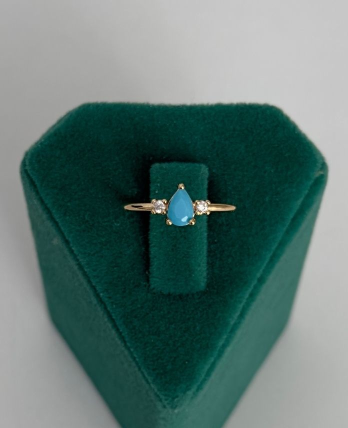 Pirinç Damla Mavi Ayarlanabilir Yüzük
