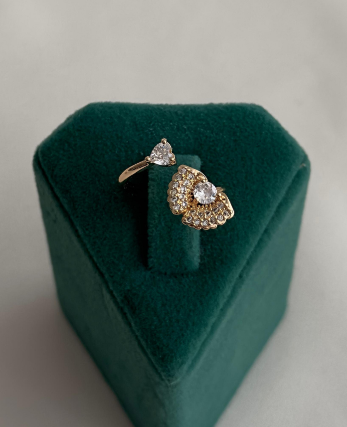 pirinç gold ayarlanabilir çapraz yelpaze taşlı yüzük
