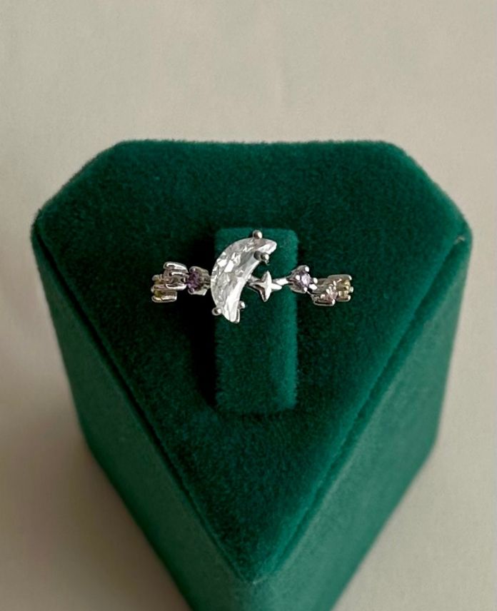 pirinç silver ayarlanabilir ay beyaz yüzük
