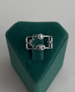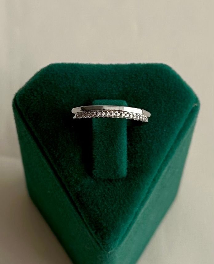 pirinç silver ayarlanabilir iki sıra taş yüzük