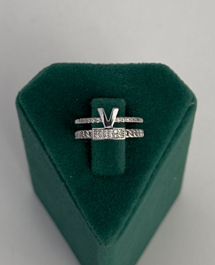 Pirinç V Yazılı Taşlı Ayarlanabilir Yüzük