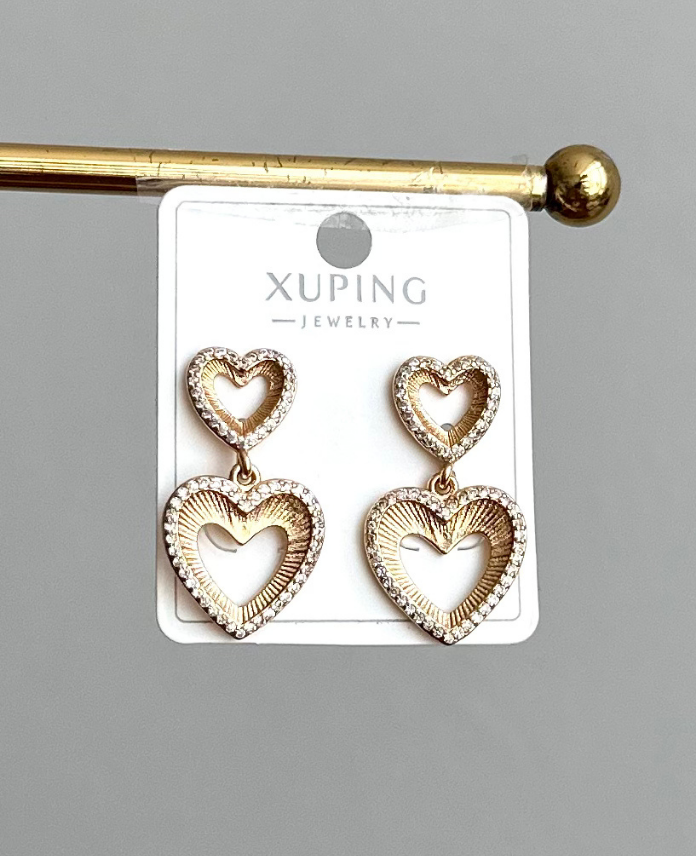 xuping rose iki kalp küpe
