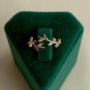 pirinç gold ayarlanabilir yaprak renkli yüzük