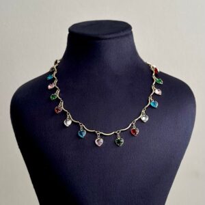 çelik gold saçaklı kalp renkli 45cm kolye