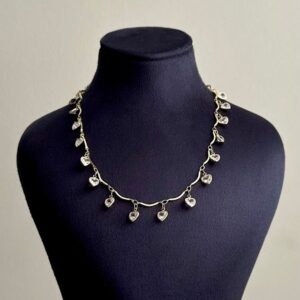 çelik gold saçaklı kalp beyaz taşlı 45cm kolye
