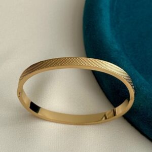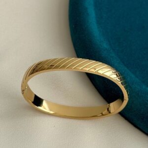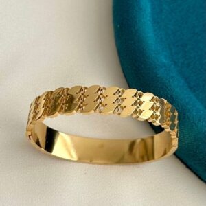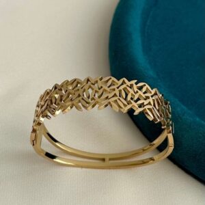 çelik gold mineli çiçek yeşil taşlı kelepçe