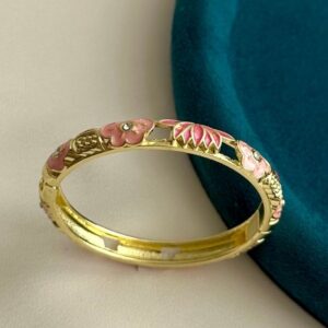 çelik gold mineli çiçek pembe taşlı kelepçe